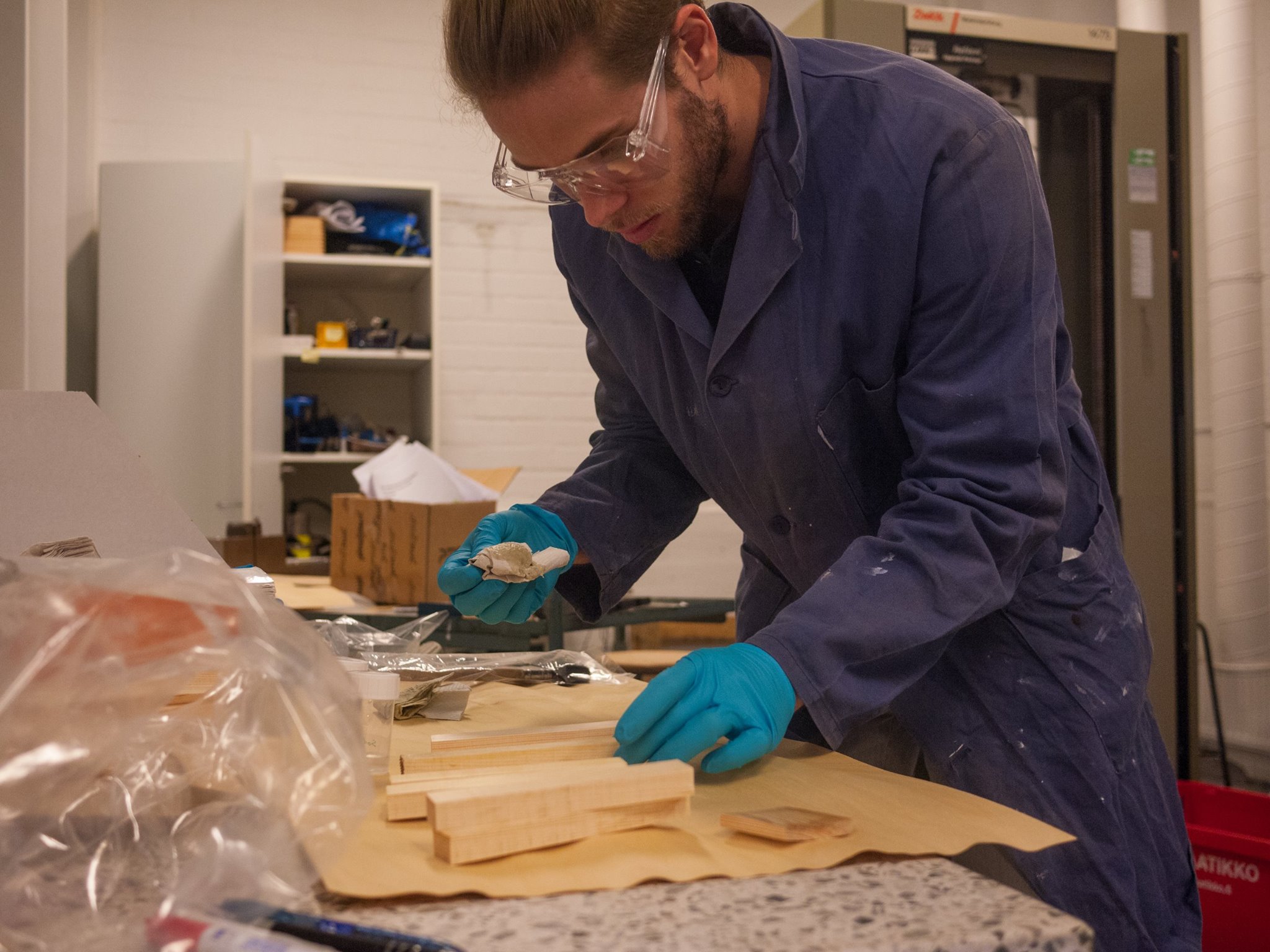 Tinh is studying the adhesion force of a coating between thermally modified and unmodified spruce with different characteristics like fast grown, slow grown, sapwood and heartwood. We look forward to the results!